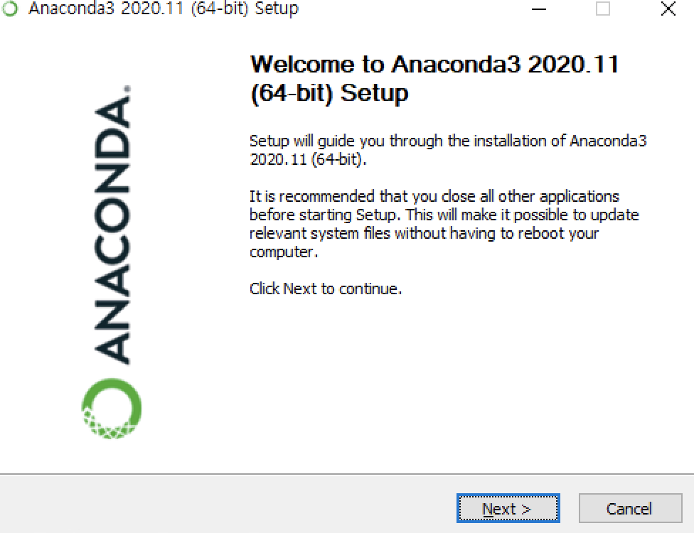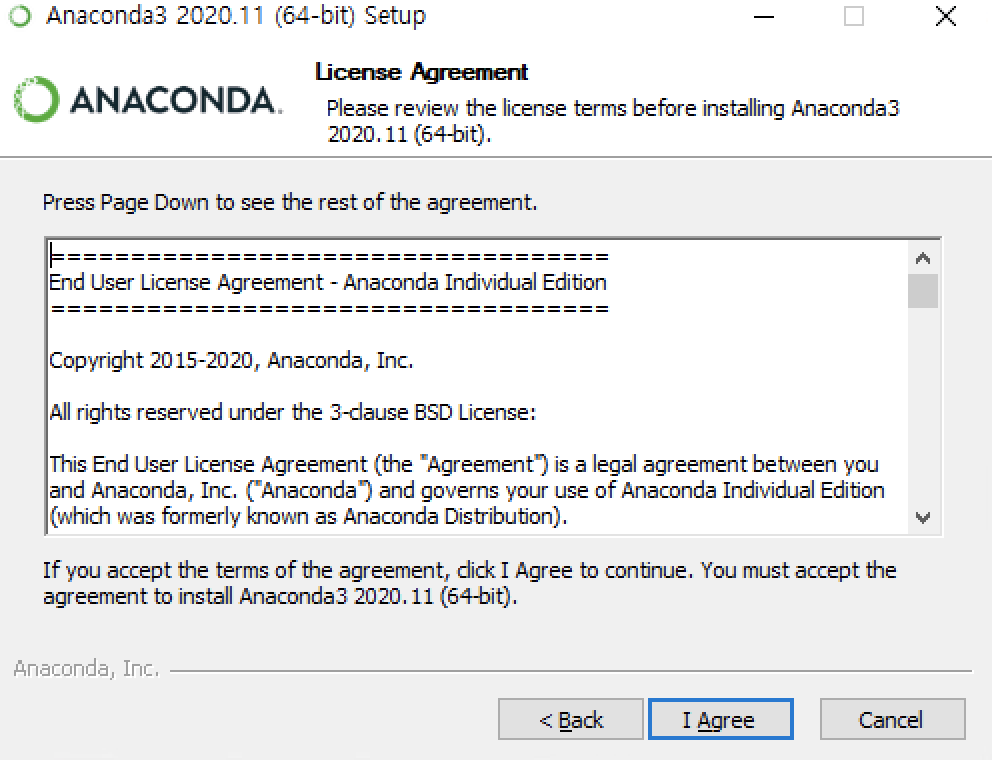 아나콘다 다운로드 로 이동하여 다운로드 가능하다