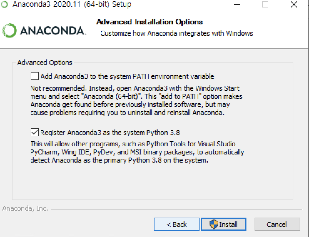 설치 폴더는 Windows => C:\ProgramData\Anaconda3